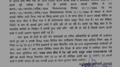 कटनी। विजयराघवगढ़ अनुविभागीय अधिकारी महेश मंडलोई ने तहसील अंतर्गत 8 हल्का पटवारियों को जारी किया कारण बताओ नोटिस। राजस्व कार्यो…