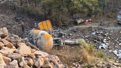 राईपुरा घाटी में पलटा सीमेंट ट्रक, पुलिया से नीचे गिरी पोकलेन मशीन