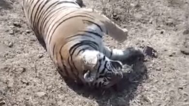 सागर के हिलगन गांव के पास मिला बाघ का शवः जंगल में पड़ा 8 वर्षीय नर बाघ का शव; शरीर पर नहीं मिले चोटों के निशान