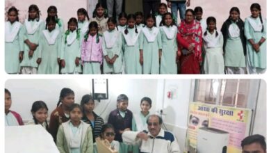 शासकीय कन्या हाई स्कूल पटेरा में छात्राओं की आंखों के स्वास्थ्य की जांच की गई