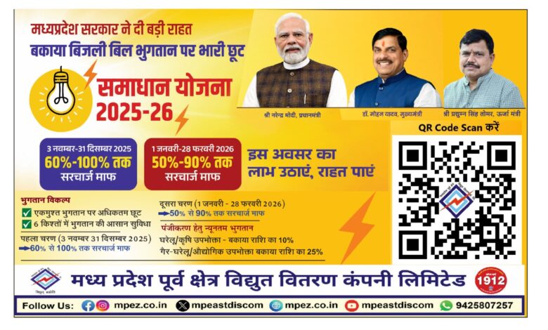 मध्यप्रदेश सरकार की बड़ी पहल, समाधान योजना 2025-26 के अंतर्गत बिजली उपभोक्ताओं को राहत