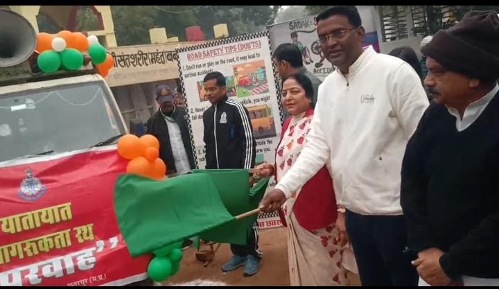 वन पर्यावरण राज्य मंत्री, जिला कलेक्टर, पुलिस अधीक्षक व छतरपुर विधायक ने हरी झंडी दिखाकर रवाना किया यातयात जागरूकता रथ