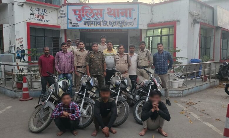 छतरपुर। जिले की नौगांव थाना पुलिस ने एक चोरी के गिरोह का किया पर्दाफाश, चोरों को गिरफ्तार कर मूंगफली चोरी, घर में घुसकर आभूषण की चोरी, मोटरसाइकिल चोरी की घटनाओं का किया खुलासा