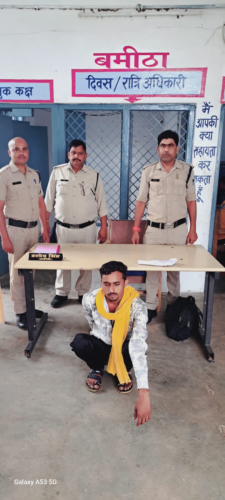 इसी क्रम में रात्रि रोड पेट्रोलिंग के दौरान थाना बमीठा पुलिस ग्राम खैरी प्रतीक्षालय के पास में संदिग्ध व्यक्ति के अवैध हथियार सहित होने की सूचना पर त्वरित कार्यवाही करते हुए मौके पर पहुंची। पुलिस को देखकर संदिग्ध ने भागने का प्रयास किया, पुलिस टीम द्वारा घेराबंदी कर आरोपी को मौके पर ही पकड़ लिया गया। तलाशी के दौरान आरोपी के पास से एक अवैध 12 बोर देशी कट्टा, कारतूस कीमत बरामद किया गया।