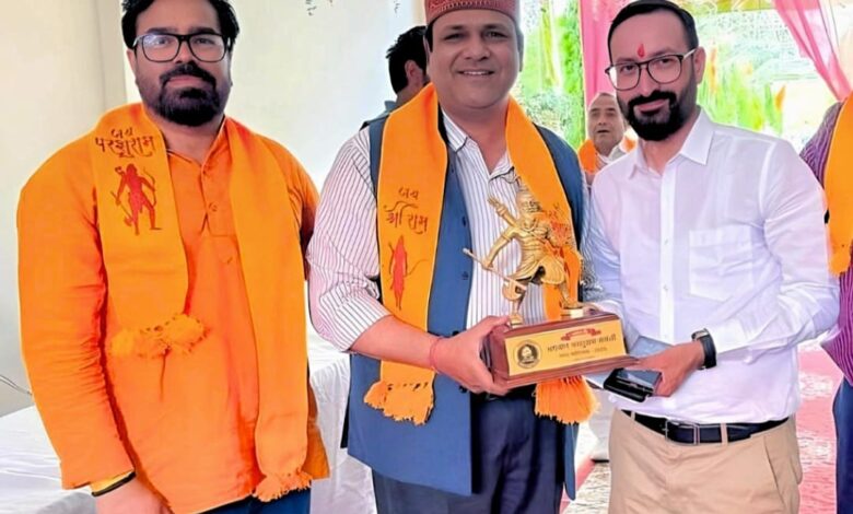 भगवान परशुराम जी व सनातन धर्म के प्रचार-प्रसार में महत्वपूर्ण भूमिका अदा करने के लिए किया गया बागपत के वरिष्ठ पत्रकार विपुल जैन को सम्मानित