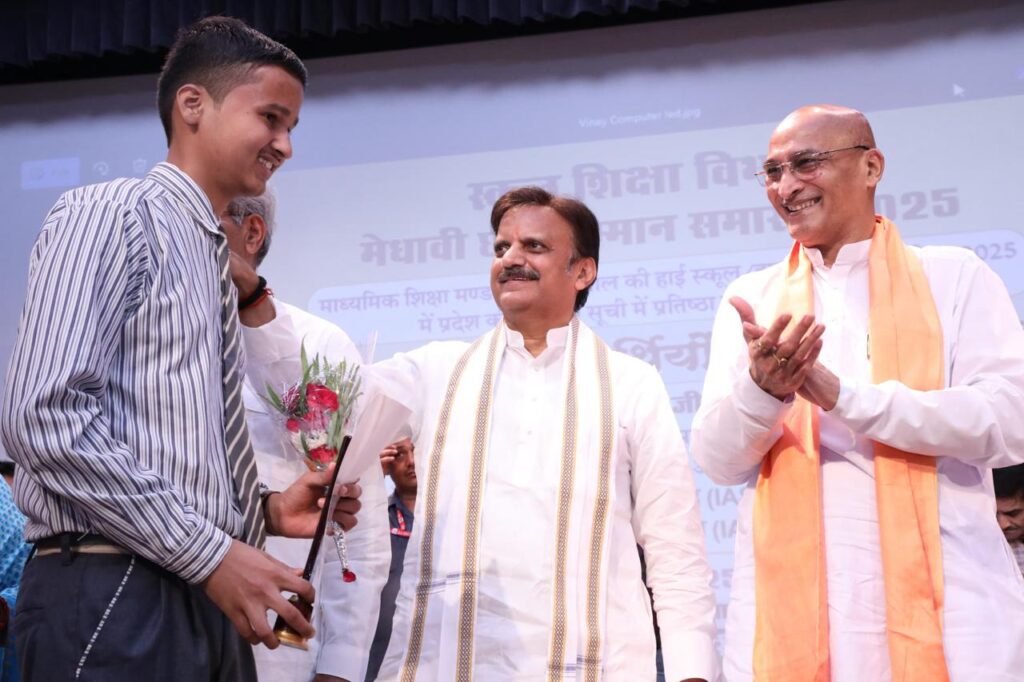 भोपाल। उप मुख्यमंत्री श्री राजेन्द्र शुक्ल ने कहा है कि जिद, जुनून एवं जज्वे से बड़े से बड़े लक्ष्य को प्राप्त किया जा सकता है। मध्यप्रदेश की प्रावीण्य सूची में स्थान प्राप्त करने वाले रीवा संभाग के विद्यार्थियों ने यह साबित कर दिया है कि विन्ध्य का भविष्य सुनहरा है और आने वाले दिनों में यह विद्यार्थी अपना योगदान देंगे। उप मुख्यमंत्री श्री शुक्ल ने स्कूल शिक्षा विभाग द्वारा माखनलाल चतुर्वेदी राष्ट्रीय पत्रकारिता एवं संचार विश्वविद्यालय रीवा परिसर के सभागार में माध्यमिक शिक्षा मंडल भोपाल की 10वीं एवं 12वीं की परीक्षा में प्रावीण्य सूची में स्थान प्राप्त करने वाले रीवा संभाग 66 विद्यार्थियों को प्रशस्ति पत्र एवं स्मृति चिन्ह देकर सम्मानित किया।