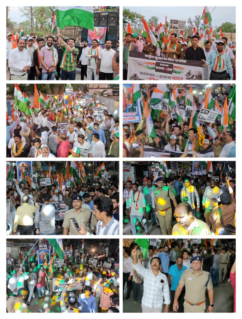 सभी को सम्बोधित करते हुए विजयराघवगढ़ विधायक संजय सत्येंद्र पाठक ने कहा प्रधानमंत्री नरेंद्र मोदी के नेतृत्व में भारतीय सेना द्वारा किए गए ऑपरेशन सिन्दूर की सफलता ने देशवासियों को गौरवान्वित किया है। पाकिस्तान के नापाक इरादों और महिलाओं के सामने ही उनके सिंदूर को उजाड़ने वालो के लिए नरेंद्र मोदी ने महिलाओं का सम्मान बढाते हुए उन्हे न्याय देने के लिए मिशन का नाम सिंदूर रखा गया जिसका नेतृत्व दो महिलाओ ने कर बता तिया की भारत के महिलाओं की ताकत क्या होती है भारत की महिलाए लक्ष्मी है समय आने पर अपनी रक्षा के लिए दुर्गा भी बन जाती है। श्रीपाठक ने कहा देश की सेवा का हमारी शान है अगर इन सपुतो के लिए हमे अपनी जान देनी पडे तो हम पिछे नही हटेगे भारतीय सेना के साथ हम सभी खडे है । रैली मे उपस्थित कई हजार देश भक्तो ने हजारों की संख्या में विजयराघवगढ़ वासियों ने यात्रा में शामिल होकर सेना के साथ खड़े होने एवं ऑपरेशन सिंदूर की विजय का उत्सव मनाने का संदेश दिया है।
