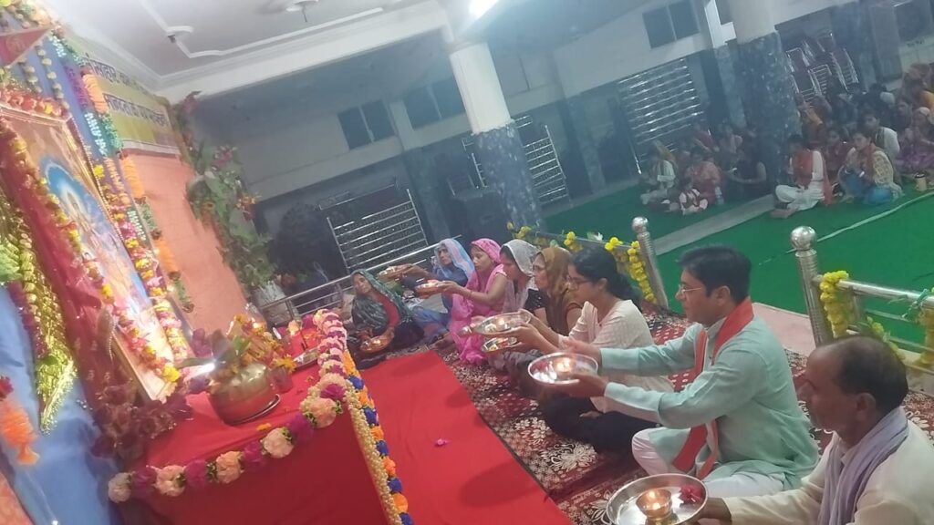 महोबा@अखिलेश शिवहरे। भगवती मानव कल्याण संगठन एवं पंचज्योति शक्ति तीर्थ सिद्धाश्रम धाम के संयुक्त तत्वावधान में जिला स्तरीय मासिक महाआरती हर माह की भांति इस माह भी अम्बे पैलेस परमानंद चौक महोबा में दिव्यता पूर्वक संपन्न हुई। महाआरती के शुभारंभ में कु.अंजली व कु. यशोदा ने गुरुवर व माता भगवती जगदम्बा के ओजस्वी जैकारे लगवाए तत्पश्चात माता भगवती जगदम्बा व परमपूज्य योगीराज श्री शक्तिपुत्र जी महाराज की पावन दिव्य महाआरती संपन्न हुई।