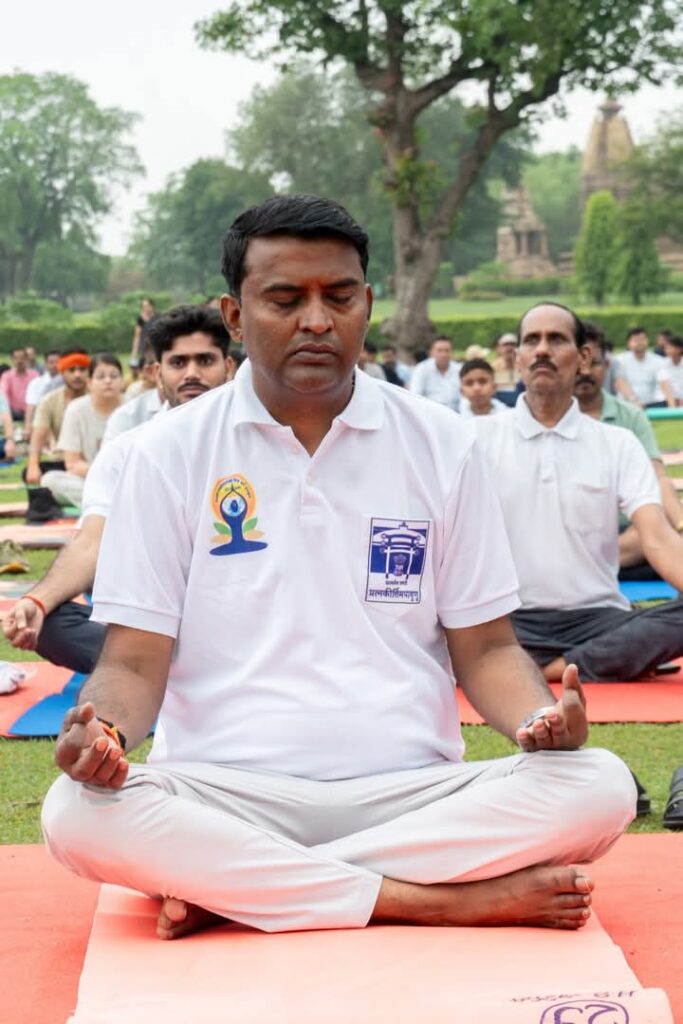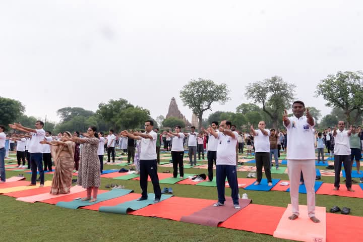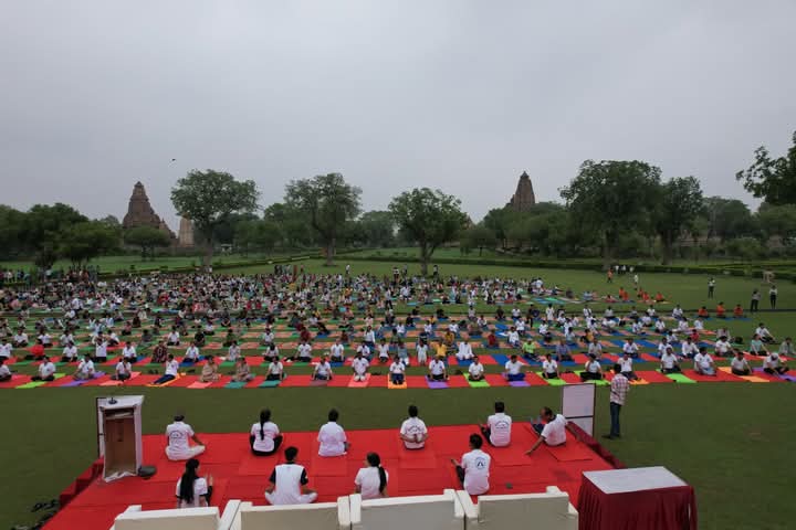 खजुराहो में 11वें अंतर्राष्ट्रीय योग दिवस पर सामूहिक योगाभ्यास कार्यक्रम का हुआ आयोजन