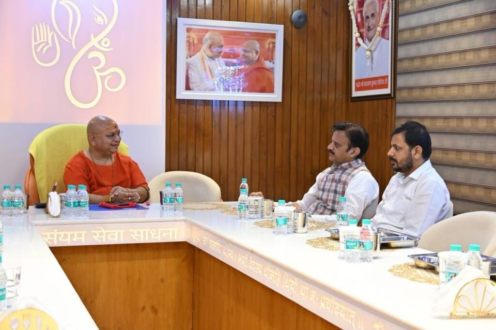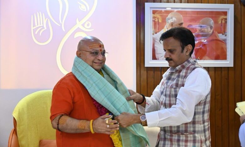 उपमुख्यमंत्री श्री शुक्ल ने दिल्ली में आचार्य महामंडलेश्वर स्वामी बालकानंद गिरी से की सौजन्य भेंट