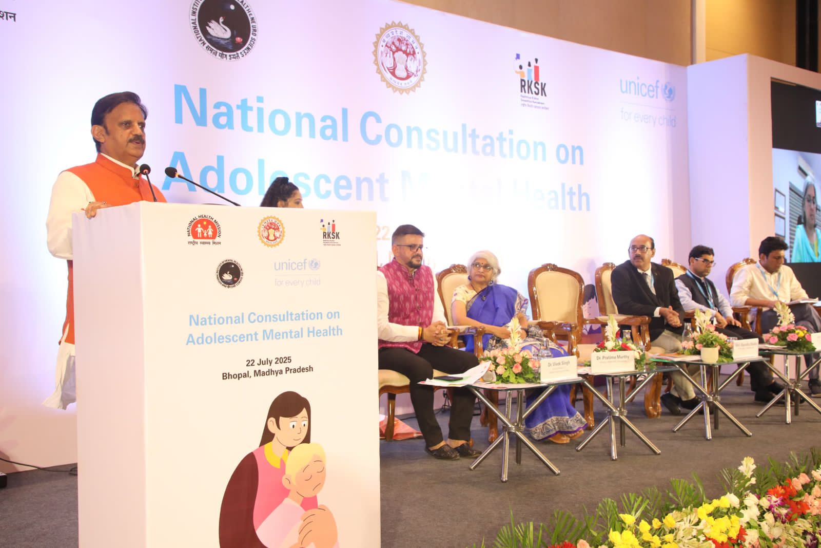 उप आयुक्त, किशोर स्वास्थ्य, स्वास्थ्य एवं परिवार कल्याण मंत्रालय डॉ. ज़ोया अली रिज़वी, ने कहा कि भारत किशोर मानसिक स्वास्थ्य के लिए एक एकीकृत और साक्ष्य-आधारित प्रणाली की दिशा में आगे बढ़ रहा है। निदेशक निमहांस डॉ. प्रतिमा मूर्ति ने कहा कि मानसिक स्वास्थ्य को विद्यालयों और समुदायों में प्रारंभिक स्तर से जोड़ा जाना चाहिए ताकि व्यवहारिक सहयोग और हस्तक्षेप समय पर हो सके। मुख्य स्वास्थ्य अधिकारी, यूनिसेफ इंडिया डॉ. विवेक सिंह, ने कहा कि मानसिक स्वास्थ्य के क्षेत्र में प्रतिक्रियात्मक नहीं, बल्कि समुदाय आधारित और सक्रिय दृष्टिकोण अपनाने की आवश्यकता है। यूनिसेफ मध्यप्रदेश के मुख्य फील्ड ऑफिसर (कार्यवाहक) श्री अनिल गुलाटी ने कहा कि किशोरों के लिए सुरक्षित स्थान, प्रशिक्षित सहायक और फ्रंटलाइन कार्यकर्ताओं का सशक्तिकरण अत्यंत आवश्यक है ताकि हर किशोर को सहायता, समझ और आशा प्राप्त हो सके। स्वास्थ्य विशेषज्ञ, यूनिसेफ इंडिया डॉ. सैयद हुब्बे अली, ने किशोरों की मानसिक आवश्यकताओं की व्याप्ति और विविधता को रेखांकित किया। कार्यक्रम में यूनिसेफ, एम्स , टिस, निम्हांस और सेंटर फॉर मेंटल हेल्थ लॉ एंड पॉलिसी के विशेषज्ञों सहित वरिष्ठ अधिकारियों, शिक्षाविदों, डॉक्टरों, युवा प्रतिनिधियों एवं नीति निर्माताओं ने सहभागिता की।