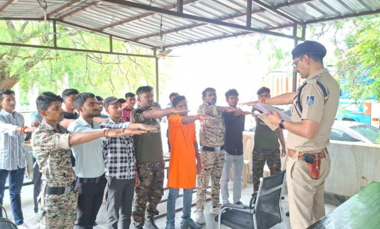 आज छतरपुर जिले के समस्त थाना चौकी में पुलिस के साथ ड्यूटी में भागीदारी कर रहे नगर एवं ग्राम रक्षा के समिति सदस्यों को थाना चौकी परिसर एकत्रित किया गया। नशे के दुष्परिणामों की जानकारी दी गई। नगर एवं ग्राम रक्षा समिति के सभी सदस्यों ने एकजुट होकर नशे से दूर रहने की शपथ ली। साथ ही यह प्रण भी लिया कि समाज को नशे से दूर रहने हेतु जागरूक करेंगे।