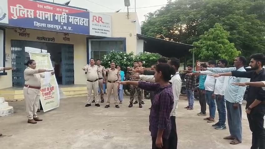 छतरपुर। पुलिस मुख्यालय, मध्यप्रदेश के निर्देशन में चलाए जा रहे “नशे से दूरी है जरूरी” जन-जागरूकता अभियान के तहत छतरपुर पुलिस द्वारा 15 जुलाई से 30 जुलाई 2025 तक जिले भर में विभिन्न प्रकार के कार्यक्रम आयोजित किए जा रहे हैं।