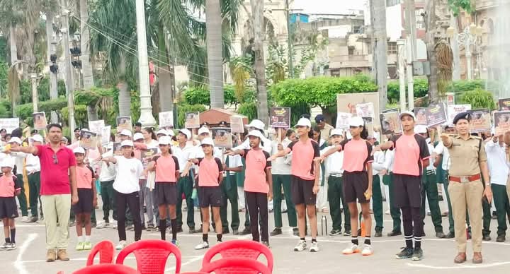 ग्वालियर। आज महाराजबाड़े पर पुलिस मुख्यालय द्वारा चलाए जा रहे जागरूकता अभियान “ नशे से दूरी है जरूरी “ के तहत दो हज़ार लोगों की मानव श्रृंखला का निर्माण किया गया ।