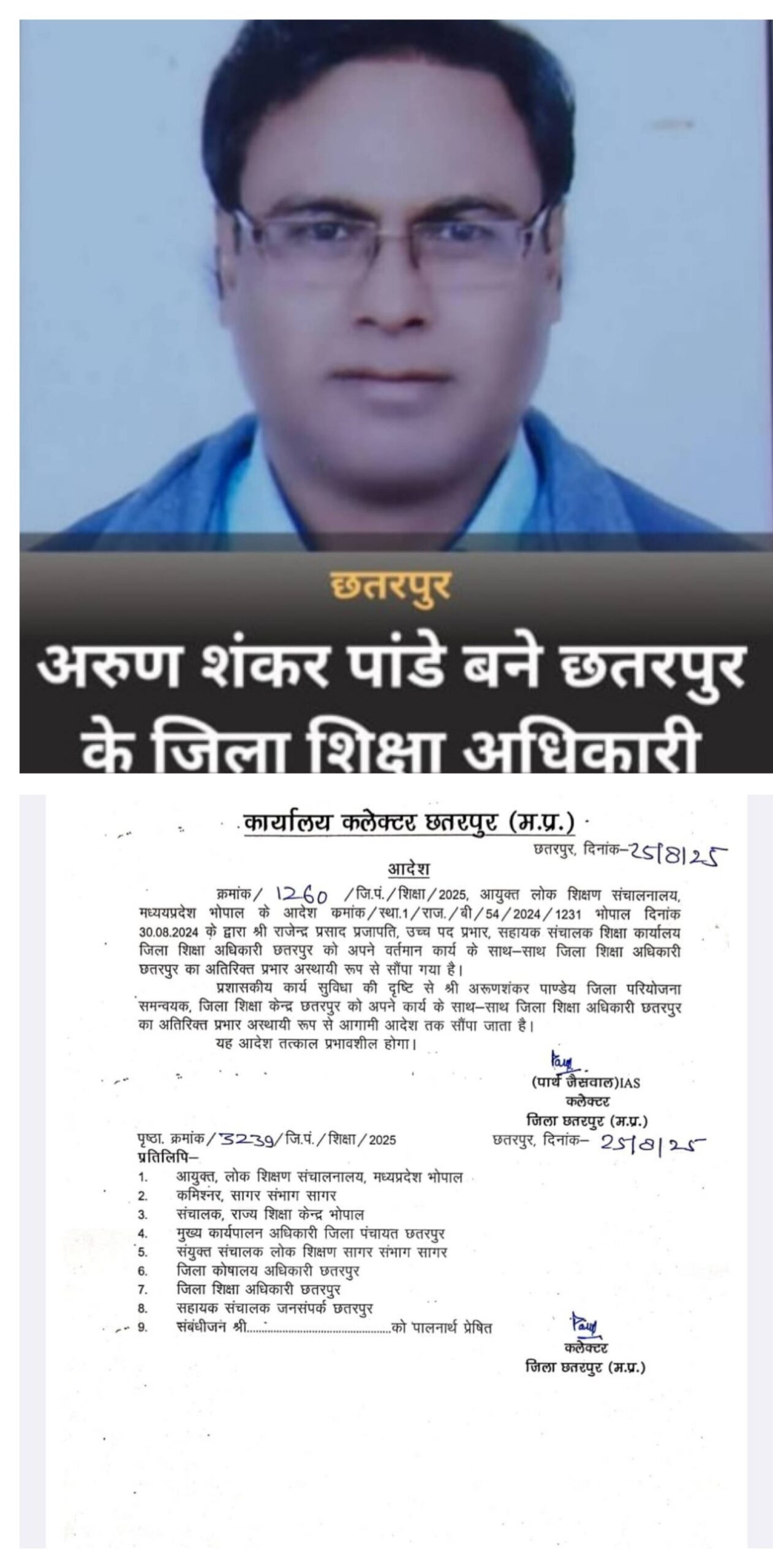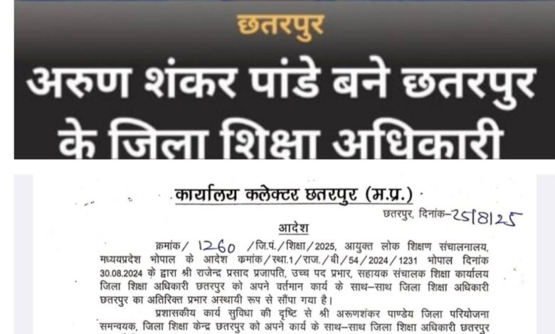 अरुण शंकर पांडे बने छतरपुर के नए जिला शिक्षा अधिकारी
