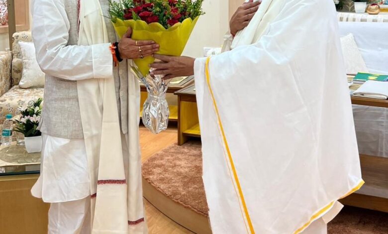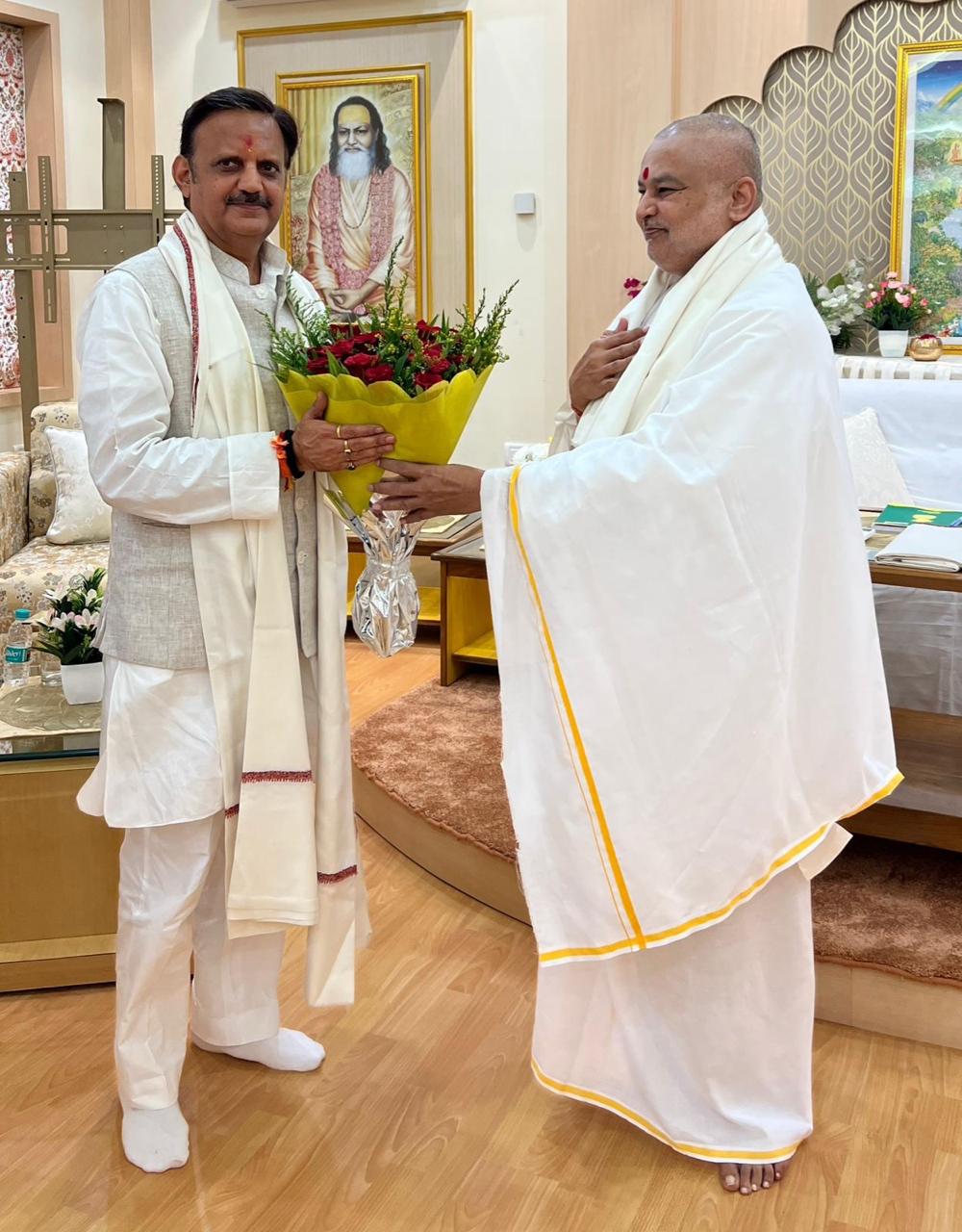 उप मुख्यमंत्री श्री राजेन्द्र शुक्ल ने ब्रह्मचारी महर्षि गिरीश जी से की सौजन्य भेंट