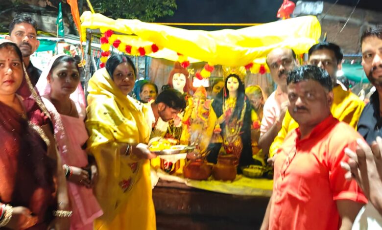 कटनी@शेरा मिश्रा। विजयराघवगढ़ गणेश विसर्जन चल समारोह इस बार नगर पारिषद अध्यक्ष राजेश्वरी हरीश दुवे के नेतृत्व में ऐतिहासिक और विशेष बन गया। अध्यक्ष दुवे ने पार्षदों के साथ मिलकर संकट मोचन चौराहे पर सभी गणेश प्रतिमाओं का वेद मंत्रोच्चारण, नारियल, फल-फूल व दक्षिणा के साथ पूजन-अर्चन कर नई प्रथा का शुभारंभ किया।