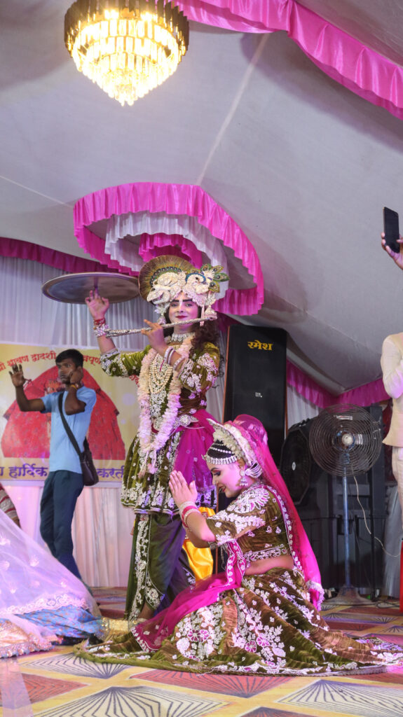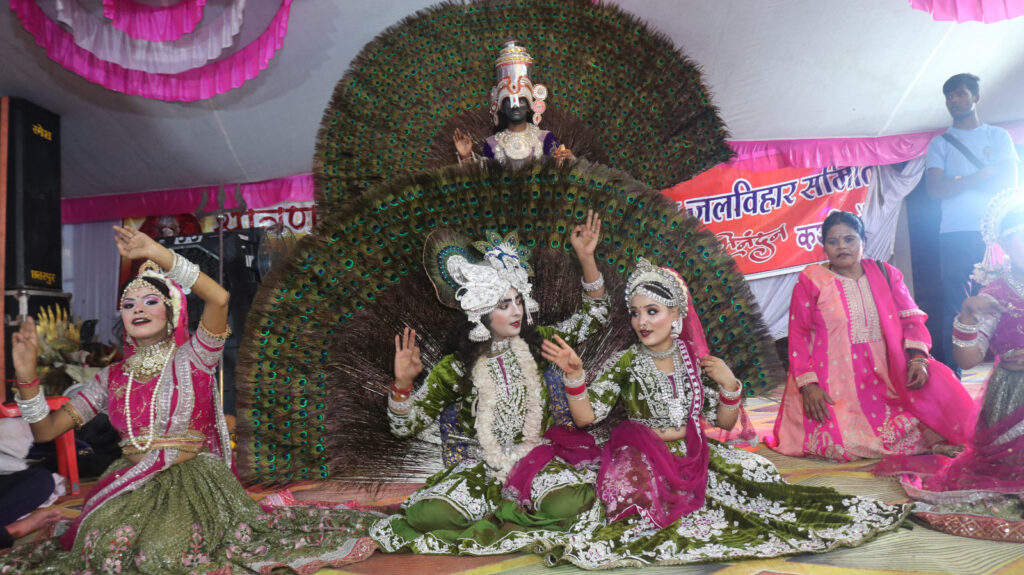 श्री कुंजबिहारी नृत्यरास मंडल वृंदावन के कलाकारों ने बहुत सुंदर झांकियों व कलाकारी से सबको प्रभावित किया। महारास के इस भव्य आयोजन में हजारों भक्तों को राधा-कृष्ण की लीलाओं ने मंत्रमुग्ध कर दिया। मेघों की गर्जना और बारिश की फुहारों के बीच भक्तों में भारी उत्साह देखते ही बनता था। यह आयोजन हर साल भक्तों के लिए एक अविस्मरणीय अनुभव होता है, और इस बार बारिश ने इसे और भी खास बना दिया।