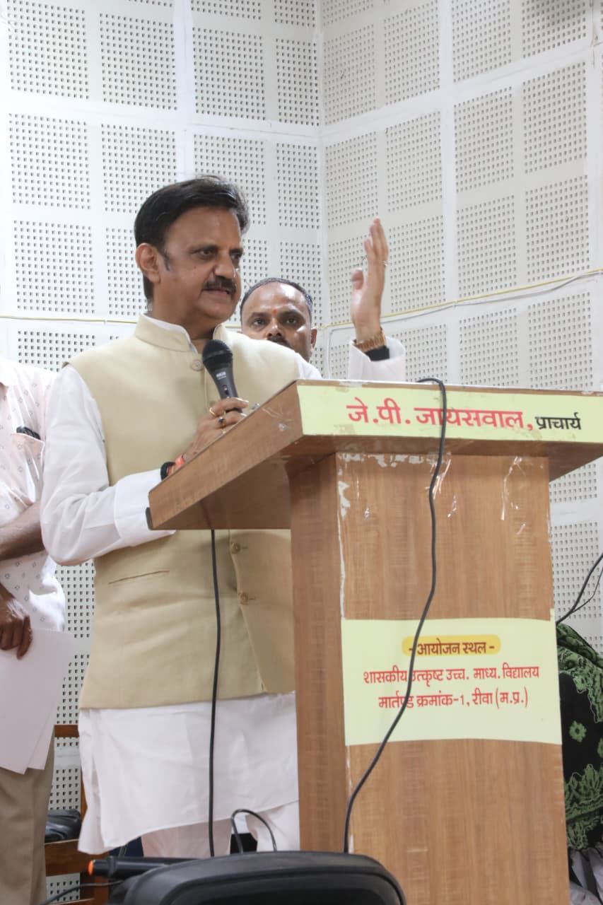 उप मुख्यमंत्री ने कहा कि रीवा का तेजी से विकास हो रहा है। चारों ओर फोरलेन सड़कें और रेलवे की सुविधा है। रीवा एयरपोर्ट से दो अक्टूबर से दिल्ली के लिए 72 सीटर हवाई जहाज की सुविधा शुरू हो रही है। इसके बाद रीवा से इंदौर के लिए भी 72 सीटर हवाई जहाज की सुविधा मिलेगी। इससे पूरे विन्ध्य क्षेत्र में पर्यटन का विकास होगा। पूर्व महापौर श्री वीरेन्द्र गुप्ता, सहायक संचालक शिक्षा श्री राजेश मिश्रा, प्राचार्य श्री जेपी जायसवाल सहित बड़ी संख्या में विद्यार्थी उपस्थित रहे।