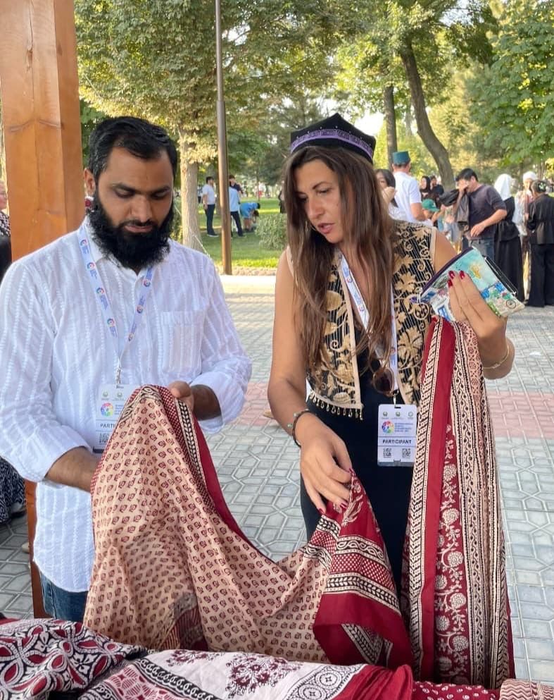 भोपाल। भारत की अनमोल धरोहर और मध्यप्रदेश के धार जिले की शान बाग प्रिंट ने एक बार फिर वैश्विक मंच पर अपनी चमक बिखेरी है। उज़्बेकिस्तान के ऐतिहासिक शहर कोकन में 19 से 21 सितंबर तक आयोजित अंतर्राष्ट्रीय हस्तशिल्प महोत्सव-2025 में बाग प्रिंट के युवा शिल्पकार मोहम्मद खत्री ने अपनी अद्भुत कारीगरी से सबका मन मोह लिया। इस महोत्सव में 70 देशों के 278 मास्टर कारीगरों ने भाग लिया। भारत से केवल 2 शिल्पकार महोत्सव में शामिल हुए।