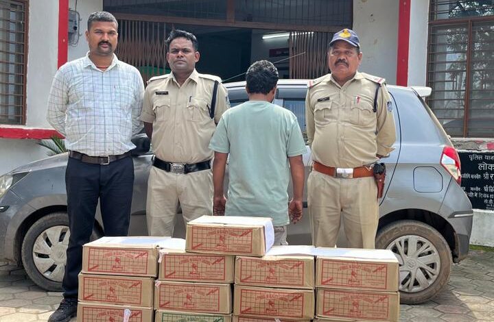 थाना प्रभारी रितेश शर्मा द्वारा लगी जानकारी के अनुसार दिनांक 28/09/2025 की दरम्यानी रात पुलिस टीम नवरात्र पर्व के चलते कस्बा व ग्रामीण क्षेत्रों का भ्रमण कर रही थी। इसी दौरान एक संदिग्ध वाहन क्रमांक एम.पी. 21 सी.ए. 5948 को रोका गया। तलाशी लेने पर वाहन के अंदर सीलबंद शराब की 17 पेटियाँ पाई गईं। प्रत्येक पेटी में 50 पाव देशी प्लेन शराब भरी हुई थी। कुल कीमत 76,500 रुपये आँकी गई। आरोपी अमन उर्फ गबरु पिता सुरेश सिंह ठाकुर उम्र लगभग 29 वर्ष निवासी पुरानी बस्ती शंभू दास गली मशुरहा वार्ड थाना कोतवाली जिला कटनी मध्यप्रदेश के पास किसी भी प्रकार का वैध दस्तावेज नहीं मिले।आरोपी के विरुद्ध आबकारी एक्ट की धारा 34(2) के तहत प्रकरण पंजीबद्ध किया गया। थाना प्रभारी ने बताया कि आरोपी से पूछताछ में अन्य साथियों के नाम भी सामने आए हैं, जिनकी तलाश हेतु एक विशेष पुलिस टीम गठित की गई है।