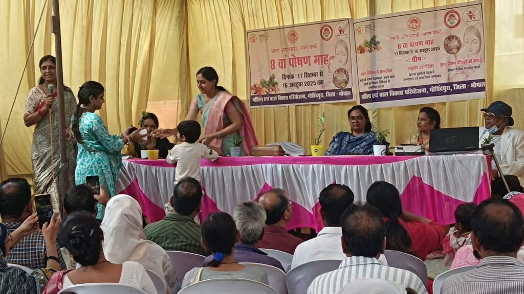 भोपाल। आज दिनांक 3 अक्टूबर 2025 को परियोजना गोविंदपुरा अंतर्गत सेक्टर इंद्रपुरी के केंद्र क्रमांक 549 में 8 वे पोषण माह की गतिविधियों का आयोजन किया गया जिसकी थीम थी “बच्चों की पोषण देखभाल करने वाले पुरुषों को पोषण चैंपियन से सम्मानित करना, पुरुष पोषण चैंपियंस की कहानी साझा करना, समुदाय एवं परिवार स्तर पर पुरुषों के नेतृत्व में अन्नप्राशन / जन्म दिवस आयोजित करना”कार्यक्रम का शुभारंभ गोविंदपुरा परियोजना की परियोजना अधिकारी श्रीमती शुभा श्रीवास्तव के द्वारा द्वीप प्रज्वलन एवं सरस्वती पूजन से किया गया।