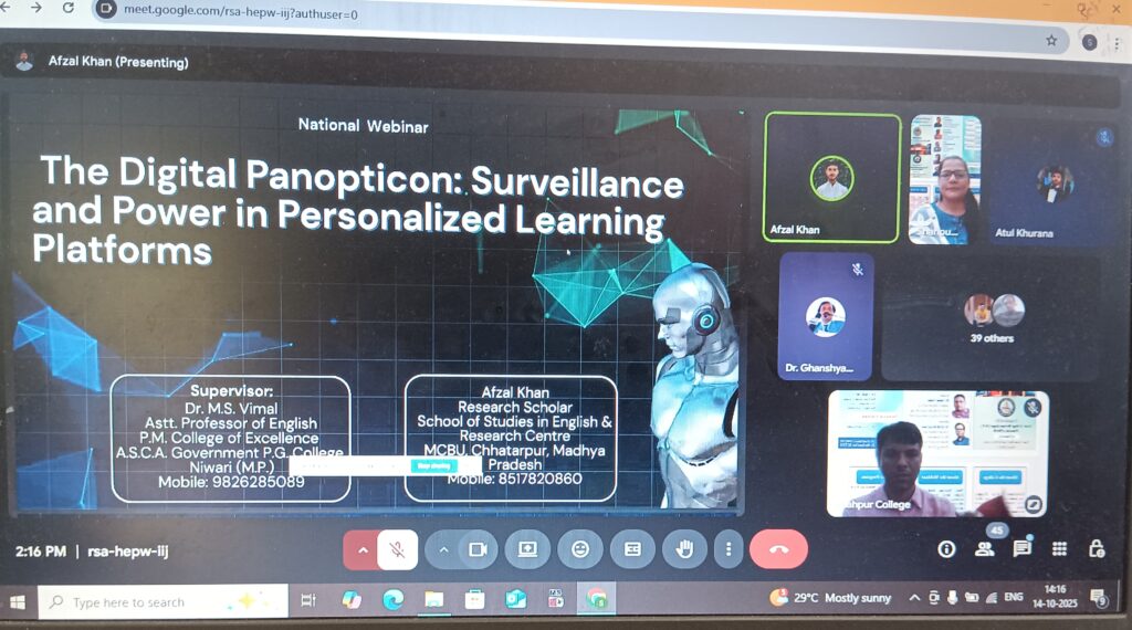 वेबीनार में देश के अधिकांश प्रांतों के शोधार्थी तथा प्रोफेसर्स गूगल मीट के माध्यम से वेबीनार में हुए शामिल