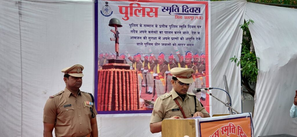 कार्यक्रम के दौरान पुलिस अधीक्षक छतरपुर श्री अगम जैन द्वारा देशभर में कर्तव्य निर्वहन के दौरान शहीद हुए पुलिस अधिकारियों एवं कर्मचारियों के नामों का वाचन कर उन्हें नमन किया गया। इसके उपरांत परेड में शहीद जवानों को सलामी दी गई तथा स्मृति परेड मार्च संपन्न हुआ।
