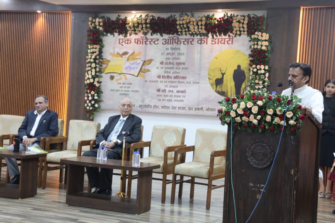 उप मुख्यमंत्री श्री शुक्ल भोपाल में सेवानिवृत्त प्रधान मुख्य वन संरक्षक (पीसीसीएफ) श्री एस. आर. रावत द्वारा लिखित पुस्तक ‘एक फॉरेस्ट ऑफिसर की डायरी’ के विमोचन अवसर पर संबोधित कर रहे थे। उन्होंने कहा कि 93 वर्ष की आयु में भी श्री रावत का यह प्रयास नागरिकों को पचास वर्ष पूर्व के प्रशासनिक, सामाजिक और प्राकृतिक परिदृश्य से परिचित कराता है। यह उनके मानवता और समाज के प्रति समर्पण की मिसाल है। उप मुख्यमंत्री श्री शुक्ल ने श्री रावत के उत्तम स्वास्थ्य और दीर्घायु की कामना की।