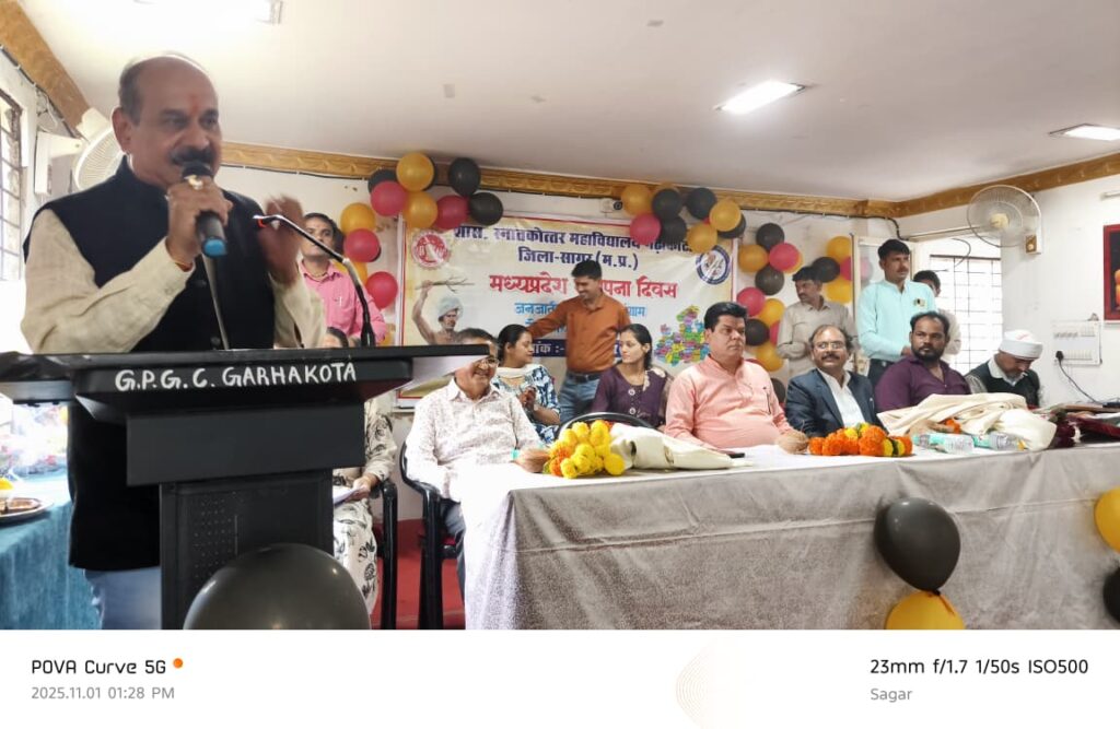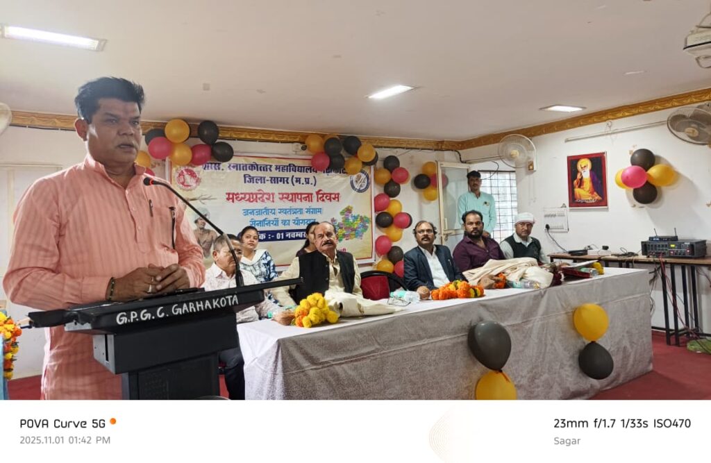 गढ़ाकोटा@पीएल पटेल। शासकीय पी०जी० कॉलेज गढ़ाकोटा में डॉ० एस०एम० पचौरी के मुख्य आतिथ्य तथा प्राचार्य डॉ०घनश्याम भारती की अध्यक्षता में मध्यप्रदेश स्थापना दिवस मनाया गया। इस अवसर पर मध्यप्रदेश शासन उच्च शिक्षा विभाग के दिशा निर्देशानुसार “जनजातीय स्वतंत्रता संग्राम सेनानियों का योगदान” विषय पर एक कार्यशाला भी आयोजित हुई। इस कार्यक्रम के विशिष्ट अतिथि शासकीय कला एवं वाणिज्य महाविद्यालय सागर के पूर्व प्राचार्य डॉ०संजीव दुबे तथा नगर पालिका परिषद गढ़ाकोटा के अध्यक्ष प्रतिनिधि मनोज तिवारी थे।