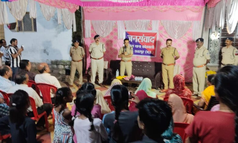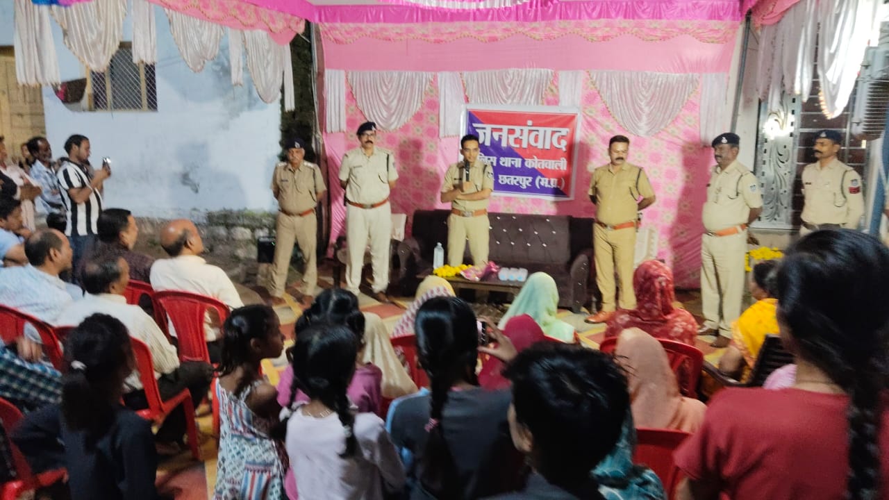 जनसंवाद के दौरान नगर पुलिस अधीक्षक, थाना प्रभारी एवं बीट प्रभारी के संपर्क नंबर तथा पुलिस हेल्पलाइन नंबर 7049101021 साझा किए गए। किसी भी संदिग्ध गतिविधि या अपराध संबंधी सूचना तुरंत साझा करें। साइबर फ्रॉड, डिजिटल अरेस्टिंग एवं ऑनलाइन धोखाधड़ी से बचाव के उपाय भी बताए गए। साथ ही बताया गया कि छतरपुर पुलिस द्वारा थाना स्तर पर “सशक्त नारी” ग्रुप संचालित किया जा रहा है, जिसमें महिलाओं को जोड़ा जा रहा है। महिलाएं अपनी शिकायतें या अपराध संबंधी सूचना इस ग्रुप के माध्यम से साझा कर सकती हैं।