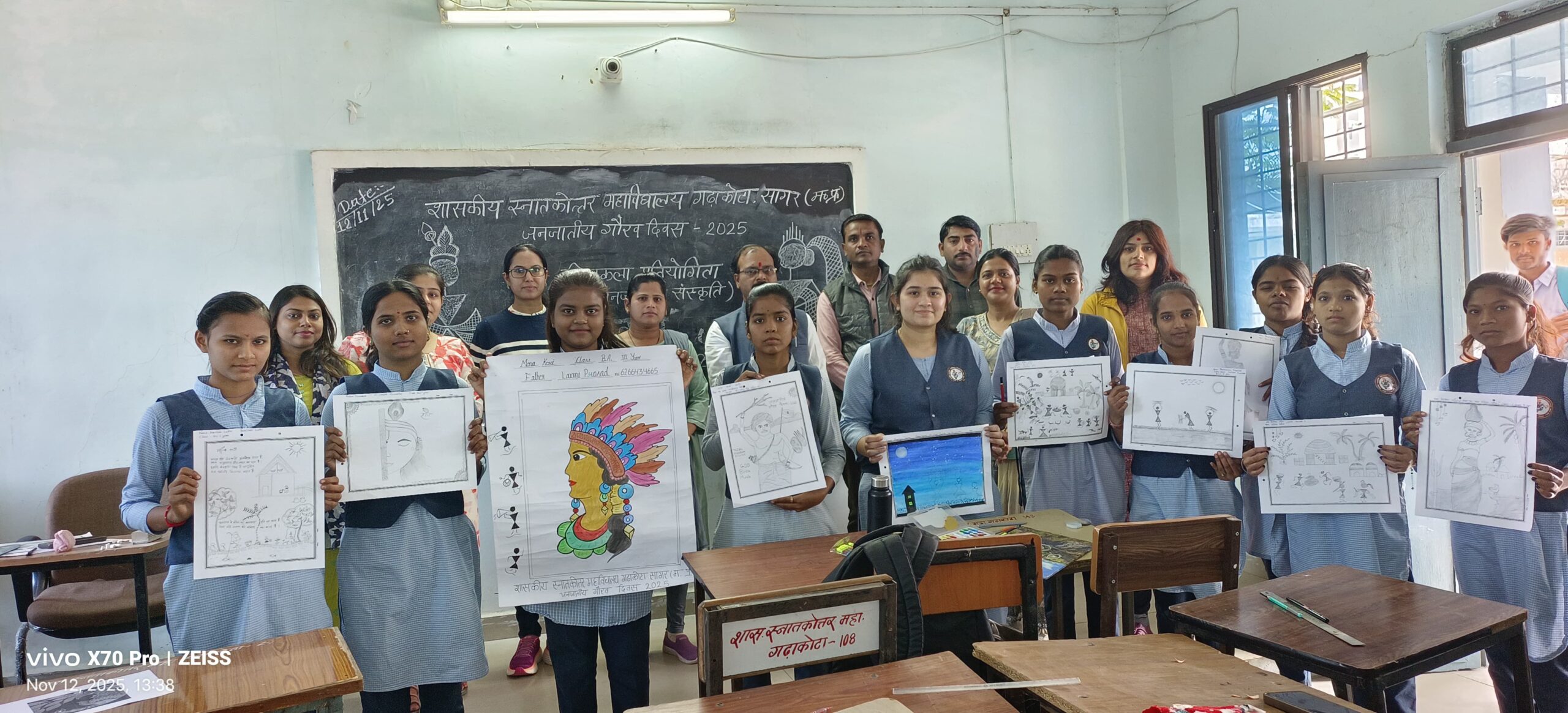 गढ़ाकोटा@ पीएल पटेल। शासकीय स्नातकोत्तर महाविद्यालय में भगवान बिरसा मुंडा जी की 150 वीं जयंती एवं जनजातीय गौरव दिवस 2025 के उपलक्ष्य में मेहंदी और चित्रकला प्रतियोगिता का आयोजन किया गया। कार्यक्रम की अध्यक्षता महाविद्यालय के प्राचार्य डॉ. घनश्याम भारती ने की। साथ ही सभी छात्र-छात्राओं को शुभकामनाएं प्रेषित करते हुए प्रतियोगिताओं में सहभागिता करने के लिए प्रोत्साहित किया । प्रतियोगिताओं का विषय जनजातीय कला और जनजातीय संस्कृति रखा गया।