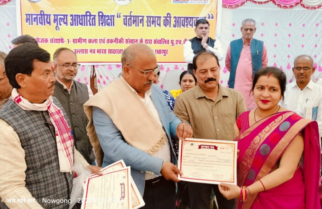 नौगांव। मानवीय मूल्य आधारित शिक्षा- “वर्तमान समय की आवश्यकता” विषय को लेकर आज दिनांक 15 नवंबर 2025 को नौगांव के ग्रामीण कला एवं तकनीकी संस्थान नौगांव में यू.ए.व्ही. लिविंग सेंटर नौगांव एवं उल्लास नवभारत साक्षरता कार्यक्रम जिला छतरपुर के संयुक्त तत्वाधान में संगोष्ठी कार्यक्रम का आयोजन संपन्न हुआ।