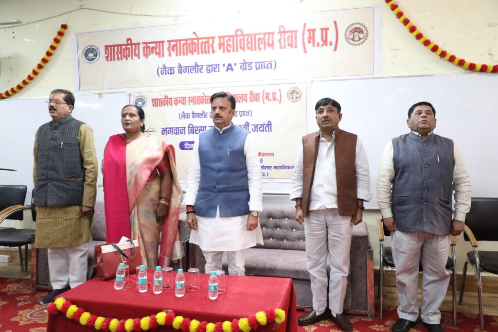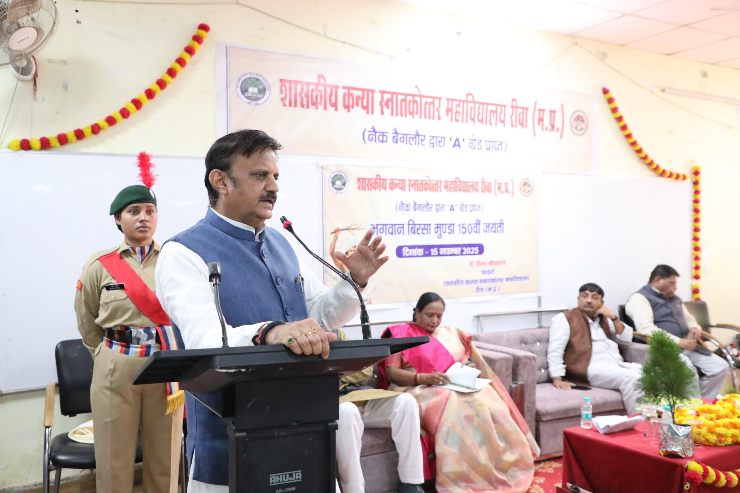 भगवान बिरसा मुण्डा एवं स्वामी विवेकानंद जैसे महापुरूषों के आदर्श जीवन को आत्मसात करते हुए उनके बताए रास्ते पर चलकर ही देश को विश्वगुरू बनाया जा सकता है। उन्होंने युवा वर्ग से आह्वान किया कि महापुरूषों के आदर्श जीवन के संस्कार अपने जीवन में उतारें और अपने साथ अपने परिवार व समाज के लिए परोपकार के कार्य करें। उप मुख्यमंत्री ने युवाओं से समाज में व्याप्त विकृतियों, नशे तथा मानवीय अवगुणों के विरूद्ध लड़ाई लड़ने का आह्वान किया। उन्होंने विकसित रीवा के साथ क्लीन रीवा व ग्रीन रीवा बनाने में सहभागी बनने का आह्वान भी किया। इससे पूर्व स्वागत उद्बोधन प्राचार्य श्रीमती विभा श्रीवास्तव ने दिया।