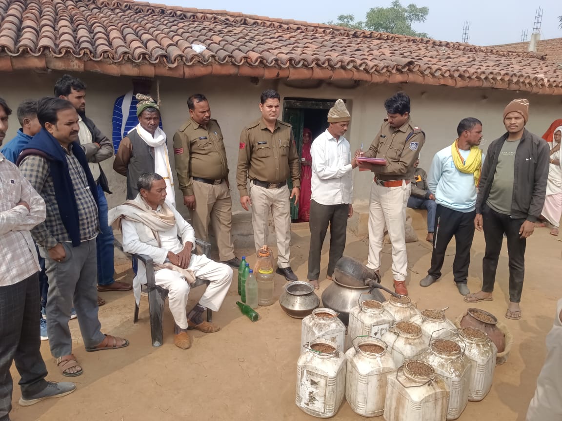 जाप्ती माल का विवरण-22 लीटर देशी हांथ भट्टी महुआ की शराब एवं 10 नग प्लास्टिक के डिब्बा महुआ लाहन कुल कीमती 3150/-रूपये।