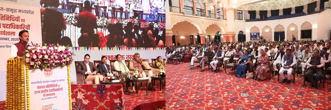 @भोपाल। पंचायतों को आत्मनिर्भर, सशक्त एवं समृद्ध बनाने के लिए पंचायत एवं ग्रामीण विकास विभाग द्वारा आत्मनिर्भर पंचायत-समृद्ध मध्यप्रदेश थीम पर कुशभाऊ ठाकरे अंतरराष्ट्रीय सभागार में पंचायत प्रतिनिधियों एवं राज्य स्तरीय पदाधिकारियों की तीन दिवसीय कार्यशाला का आयोजन किया जा रहा है। कार्यशाला के दूसरे दिन उप मुख्यमंत्री श्री राजेंद्र शुक्ल शामिल हुए।