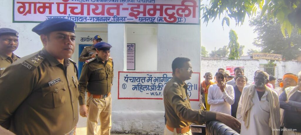 पुलिस अधीक्षक द्वारा थाना बिजावर एवं ग्राम झमटुली में किया गया भ्रमण