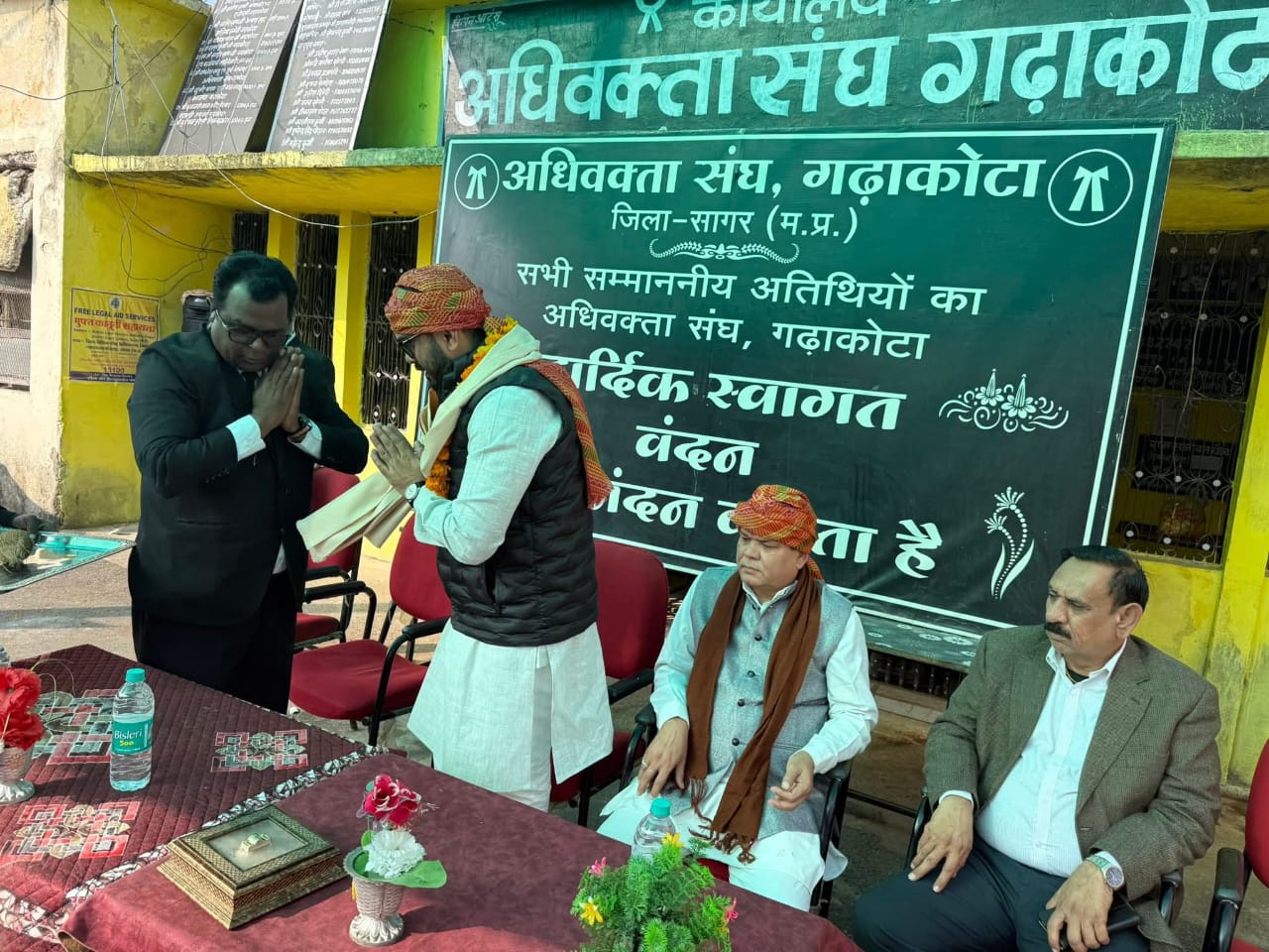 @गढ़ाकोटा पीएल पटेल। सागर जिले के गढ़ाकोटा में राष्ट्रीय अधिवक्ता दिवस के अवसर तहसील प्रांगण में प्रतिवर्षानुसार इस वर्ष भी अधिवक्ता संघ गढ़ाकोटा के द्वारा राष्ट्रीय अधिवक्ता दिवस का कार्यक्रम आयोजित किया गया। जिसमें मुख्य अतिथि पूर्व मंत्री पं गोपाल भार्गव के प्रतिनिधि के रूप में अभिषेक भार्गव,नगरपालिका अध्यक्ष प्रतिनिधि मनोज तिवारी एवं तहसीलदार महेश दुबे उपस्थित रहे।