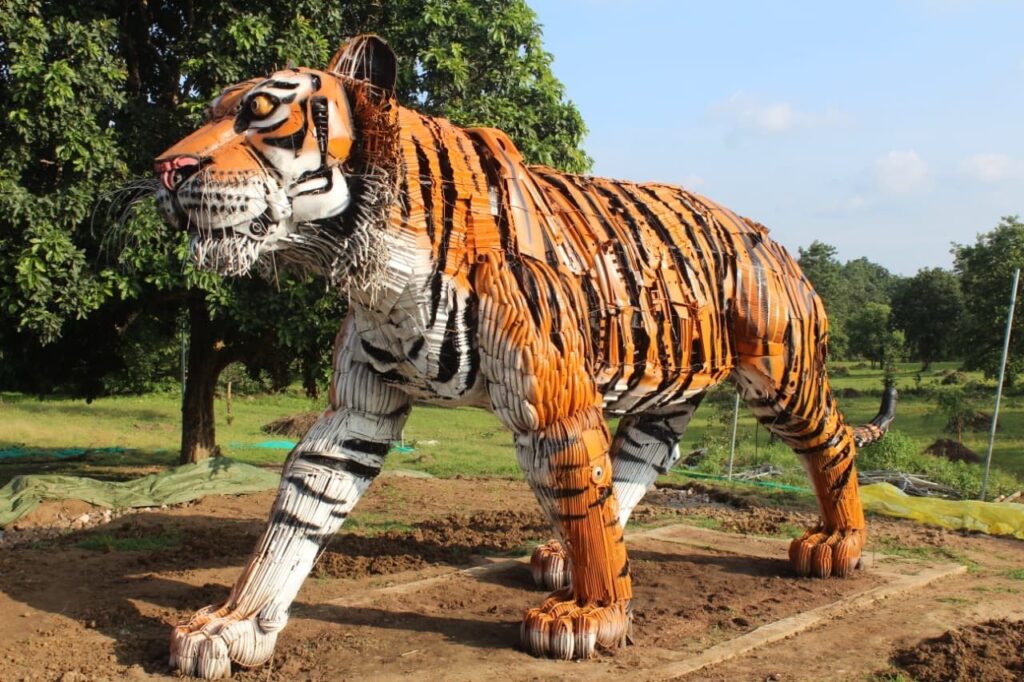 Following the Prime Minister’s Mission LiFE message and the principle of the three Rs—Reduce, Reuse and Recycle—a unique, world-class tiger sculpture has been created at Pench Tiger Reserve. This sculpture is made entirely from discarded iron scrap. Old bicycles, pipes, rusted metal sheets and other waste metal materials have been creatively reused.