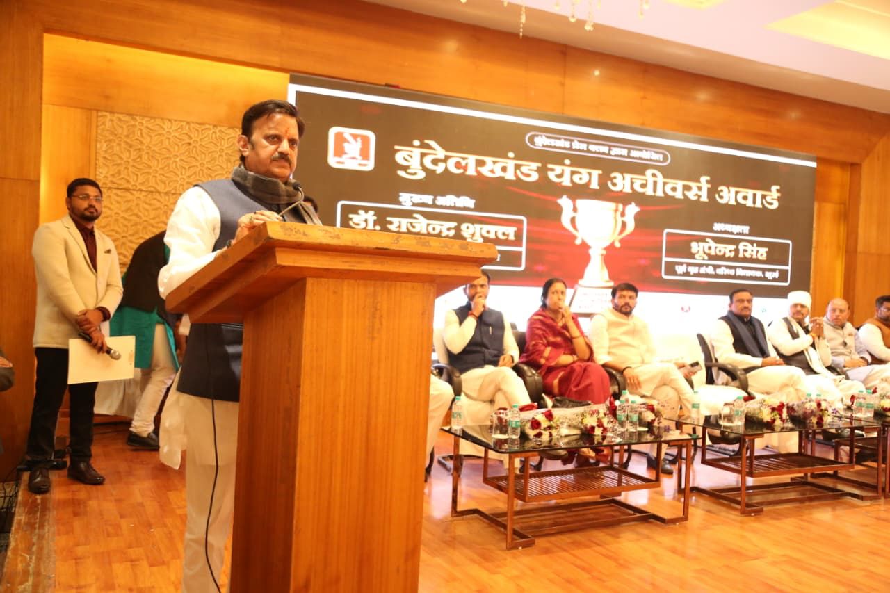 @सागर- संभागीय हेड चौधरी शशि कुमार कुर्मी। उपमुख्यमंत्री एवं सागर जिले के प्रभारी मंत्री श्री राजेन्द्र शुक्ल ने कहा कि मध्यप्रदेश मुख्यमंत्री डॉ मोहन यादव के नेतृत्व में विकासपथ पर तेज गति से आगे बढ़ रहा है और देश में नंबर वन राज्य बनने की ओर अग्रसर है। उन्होने कहा कि सागर भी किसी क्षेत्र में कम नहीं है। सागर में विकास दिखाई देता है। इस दौरान उन्होंने युवाओं से नशे से दूर रहने की अपील करते हुए कहा कि नशा, नाश का द्वार है। हमें नशे से दूर रहना चाहिए। हमारा काम ऐसा होना चाहिए जो समाज और देश की तरक्की में उपयोगी सिद्ध हो। उन्होंने क्षेत्र के समग्र विकास के लिए कृषि, उद्योग एवं पर्यटन को आवश्यक बताया। उप मुख्यमंत्री श्री शुक्ल सागर में बुंदेली प्रेस क्लब द्वारा आयोजित बुंदेलखंड यंग अचीवर्स अवॉर्ड 2025 सम्मान समारोह कार्यक्रम को संबोधित कर रहे थे।