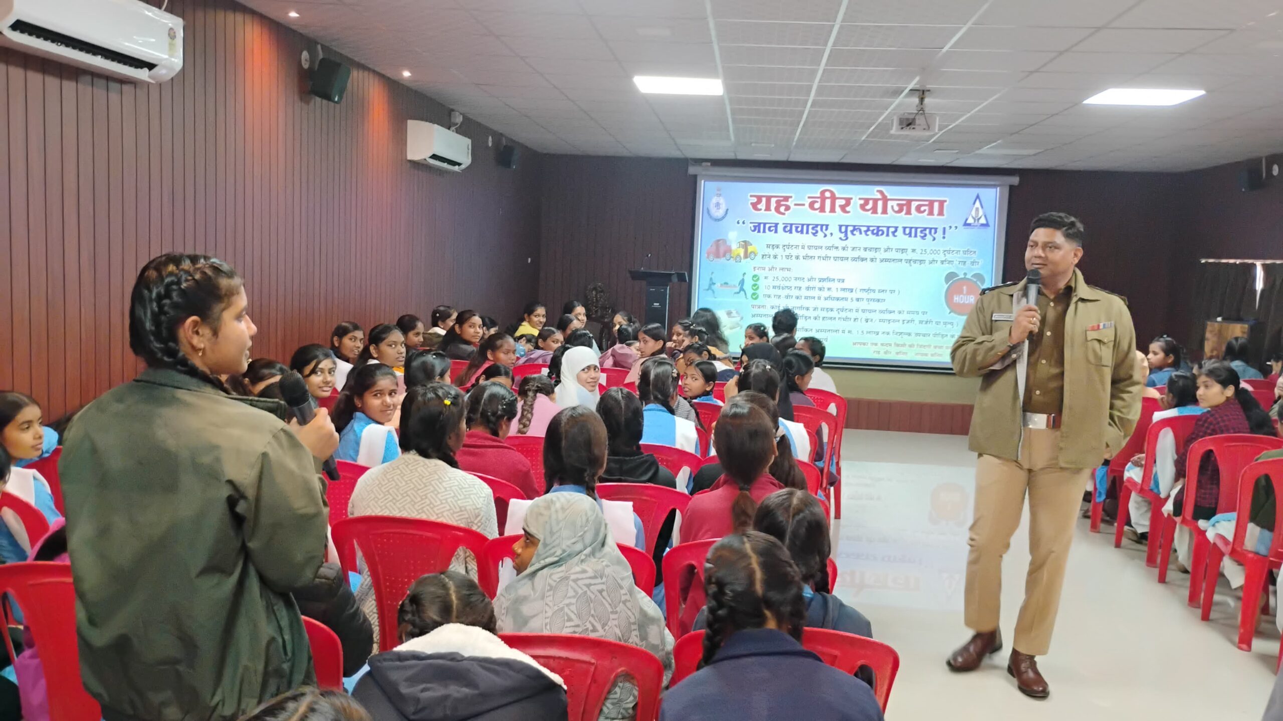 कार्यक्रम में छात्राओं को यातायात संकेतों, सड़क दुर्घटनाओं से होने वाली मृत्यु, शारीरिक एवं आर्थिक क्षति से संबंधित जानकारी देते हुए बताया गया कि यातायात नियमों का पालन आवश्यक एवं सरल है। छात्राओं से आग्रह किया गया कि वे स्वयं भी नियमों का पालन करें और अपने परिजनों को भी इसके लिए प्रेरित करें।