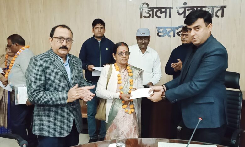 @छतरपुर-आशुतोष द्विवेदी। कलेक्टर पार्थ जैसवाल ने जिला पंचायत सभा कक्ष में सोमवार को सेवानिवृत हो चुके अधिकारी एवं कर्मचारियों को पीपीओ (पेंशन अदायगी आदेश) वितरण किए। सहायक शिक्षक निरुपमा वर्मा बीईओ ईशानगर, कौशलेंद्र सिंह सोलंकी बीईओ नौगांव, राम मनोहर द्विवेदी बीईओ नौगांव, वीरेंद्र कुमार नामदेव बीईओ ईशानगर और प्राथमिक शिक्षक तरसिला तिलो खाखा बीईओ राजनगर, मुन्नी देवी दुबे बीईओ ईशानगर, ग्रामीण कृषि विस्तार अधिकारी छतरपुर श्रवण कुमार कुशवाहा, परस राम अहिरवार सहायक ग्रेड 2 आईटीआई छतरपुर, मदन पाल चतुर्वेदी स्थल सहायक ईई पीडब्ल्यूडी, महेश कुमार गुप्ता (परिवार पेंशनर) चालक स्वास्थ्य विभाग और श्रम निरीक्षक उमेश चंद्र शर्मा को पीपीओ वितरित किए। इस दौरान जिला पंचायत सीईओ नमः शिवाय अरजरिया, एडीएम मिलिंद नागदेवे, जिला पेंशन अधिकारी के.डी. अहिरवार, सहायक पेंशन अधिकारी डी.एस. परिहार सहित अन्य अधिकारी मौजूद रहे।