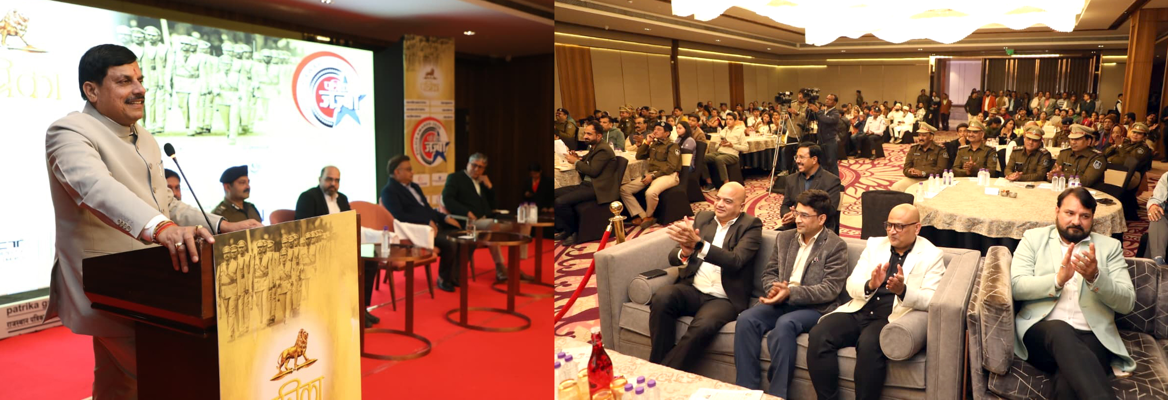 @भोपाल-आशुतोष द्विवेदी। मुख्यमंत्री डॉ. मोहन यादव ने एक निजी मिडिया संस्थान के जज्बा पुलिस अवार्ड -2025 समारोह को संबोधित करते हुए 24 घंटे कर्तव्यनिष्ठ और कर्तव्यपरायण पुलिस अधिकारियों और कर्मचारियों की सराहना की। उन्होंने बहादुर और जांबाज पुलिस कर्मियों से सावधानी और सतर्कता के साथ अपनी ऊंची उड़ान को जारी रखने का आह्वान किया। मुख्यमंत्री डॉ. यादव ने बुधवार को भोपाल में एक समारोह में पुलिस अधिकारियों-कर्मचारियों को विभिन्न श्रेणियों में उत्कृष्ट कार्य करने पर स्मृति चिन्ह प्रदान कर सम्मानित किया। समारोह को समाज सेवी और उद्योगपति श्री दिलीप सूर्यवंशी, पुलिस कमिश्नर श्री हरिनारयण चारी मिश्रा, स्टेट एडिटर श्री पंकज श्रीवास्तव ने भी संबोधित किया। राज्य मिडिया प्रभारी श्री आशीष अग्रवाल और आयुक्त जनसम्पर्क श्री दीपक कुमार सक्सेना समारोह में मौजूद रहे। रेसिडेंट एडीटर श्री राजेन्द्र गहरवार ने आभार माना।
