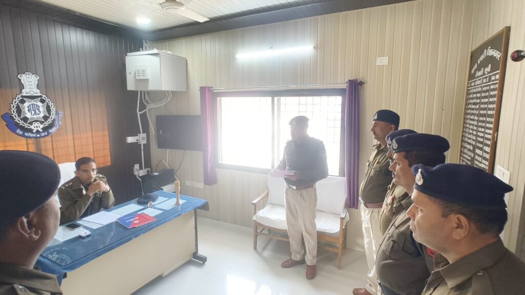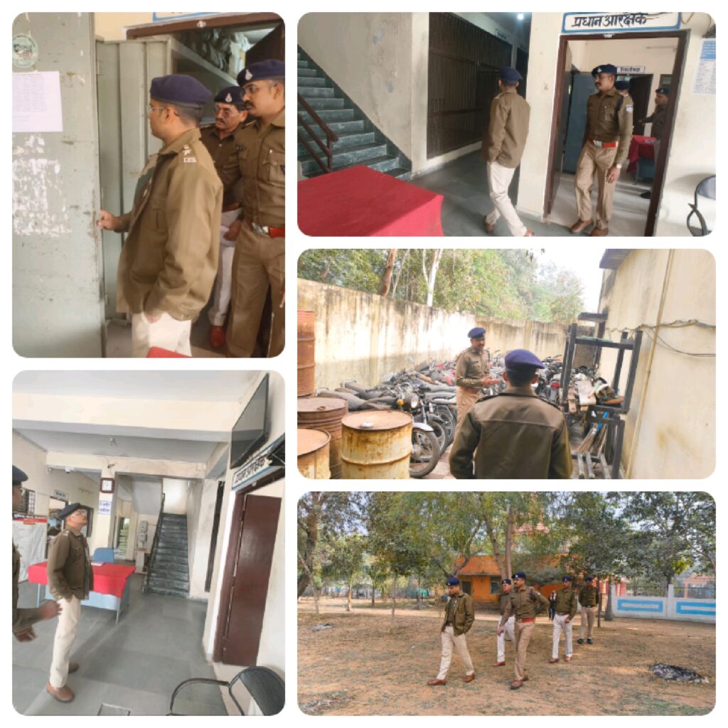 @छतरपुर-आशुतोष द्विवेदी। आज पुलिस अधीक्षक अगम जैन द्वारा अचानक थाना ईशानगर का औचक निरीक्षण किया गया। निरीक्षण के दौरान लंबित अपराध, चालान, मर्ग, गुम इंसान प्रकरणों सहित अन्य लंबित मामलों एवं शिकायतों की गहन समीक्षा की गई। पुलिस अधीक्षक द्वारा सभी प्रकरणों के शीघ्र निराकरण हेतु प्रकरणवार आवश्यक दिशा-निर्देश दिए गए।