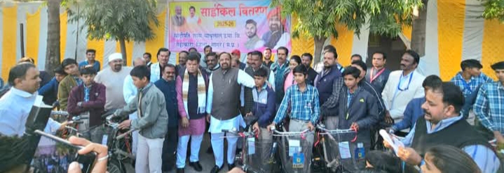 @गढ़ाकोटा-पीएल पटेल। नगर के संदीपनी विद्यालय साबूलाल गढ़ाकोटा जिला सागर में मध्य प्रदेश सरकार की छात्र- छात्राओं को निशुल्क साइकिल वितरण योजना अंतर्गत साइकिल वित रण वृक्षारोपण वार्षिक शाला पत्रिका उत्कर्ष विमोचन समारोह 2025 26 समारोह का आयोजन मुख्य अतिथि स्थानीय विधायक पंडित गोपाल भार्गव के मुख्य अतिथि में छात्रों को निशुल्क साइकिल वितरण कर वृक्षारोपण एवं वार्षिक पत्रिका उत्कर्ष का विमोचन कर कमलों से हर्षोल्लास के साथ किया गया।