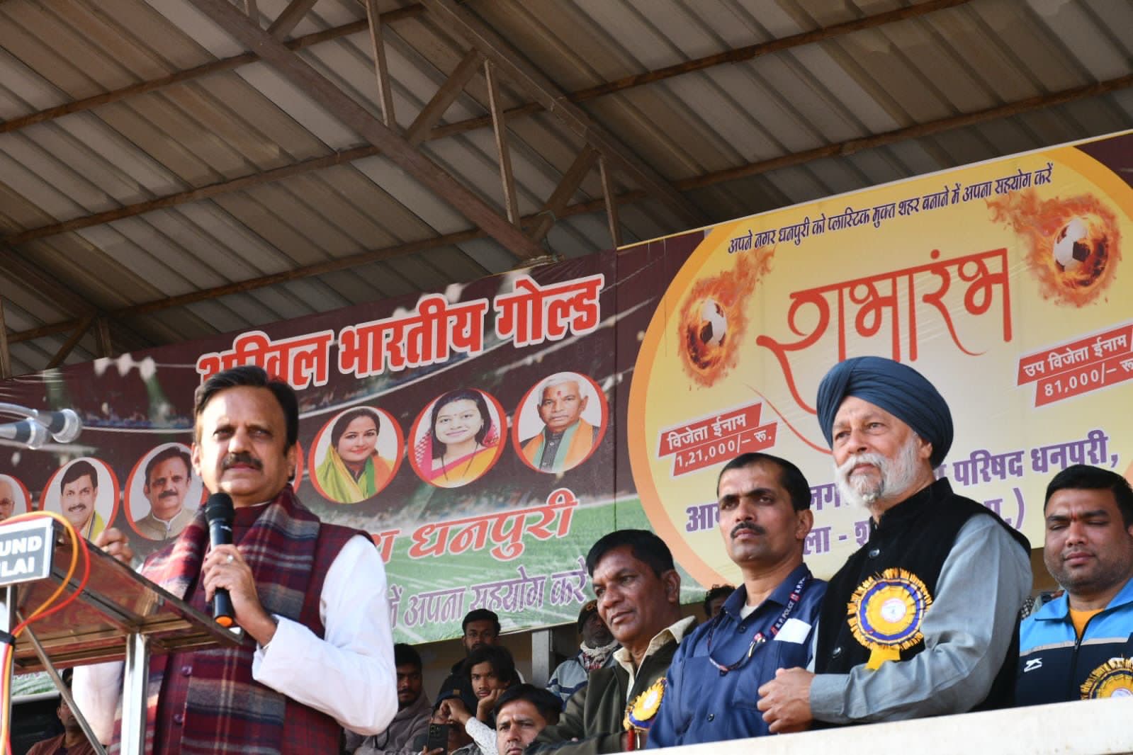 @शहडोल। उप मुख्यमंत्री श्री राजेंद्र शुक्ल ने धनपुरी शहडोल में आयोजित अखिल भारतीय गोल्ड कप फुटबॉल प्रतियोगिता में सहभागिता करते हुए खिलाड़ियों का उत्साहवर्धन किया। इस अवसर पर उन्होंने कहा कि खेल युवाओं में अनुशासन, टीम भावना एवं स्वस्थ प्रतिस्पर्धा की भावना विकसित करते हैं।