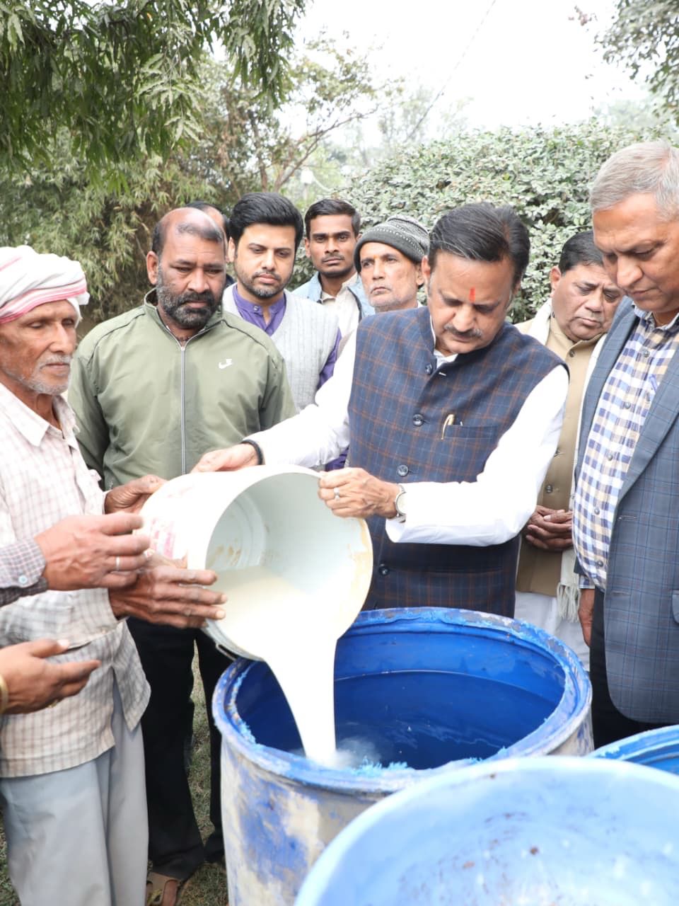 @रीवा। उप मुख्यमंत्री श्री राजेन्द्र शुक्ल के हरिहरपुर स्थित खेत में किसानों को प्राकृतिक खेती का नि:शुल्क प्रशिक्षण दिया जा रहा है। यहाँ पर प्राकृतिक खेती का मॉडल विकसित कर किसानों को प्राकृतिक खेती करने के लिए जागरूक भी किया जा रहा है। उप मुख्यमंत्री श्री शुक्ल ने प्रशिक्षण में उपस्थित होकर किसानों से संवाद किया तथा प्राकृतिक खेती के गुणों के बारे में जानकारी ली। उन्होंने कहा कि रीवा प्राकृतिक खेती का हब बनेगा। बसामन मामा गौवंश वन्य विहार के साथ ही हिनौती गौधाम में भी प्राकृतिक खेती का प्रशिक्षण दिया जाएगा ताकि संबंधित क्षेत्र के किसान प्रशिक्षण प्राप्त कर प्राकृतिक खेती कर सकें। उन्होंने कहा कि प्रत्येक किसान को अपनी भूमि के कुछ भाग में प्राकृतिक खेती अवश्य करनी चाहिए जो भूमि के स्वास्थ्य के साथ ही स्वयं व परिवार के स्वास्थ्य के लिए लाभदायक है।