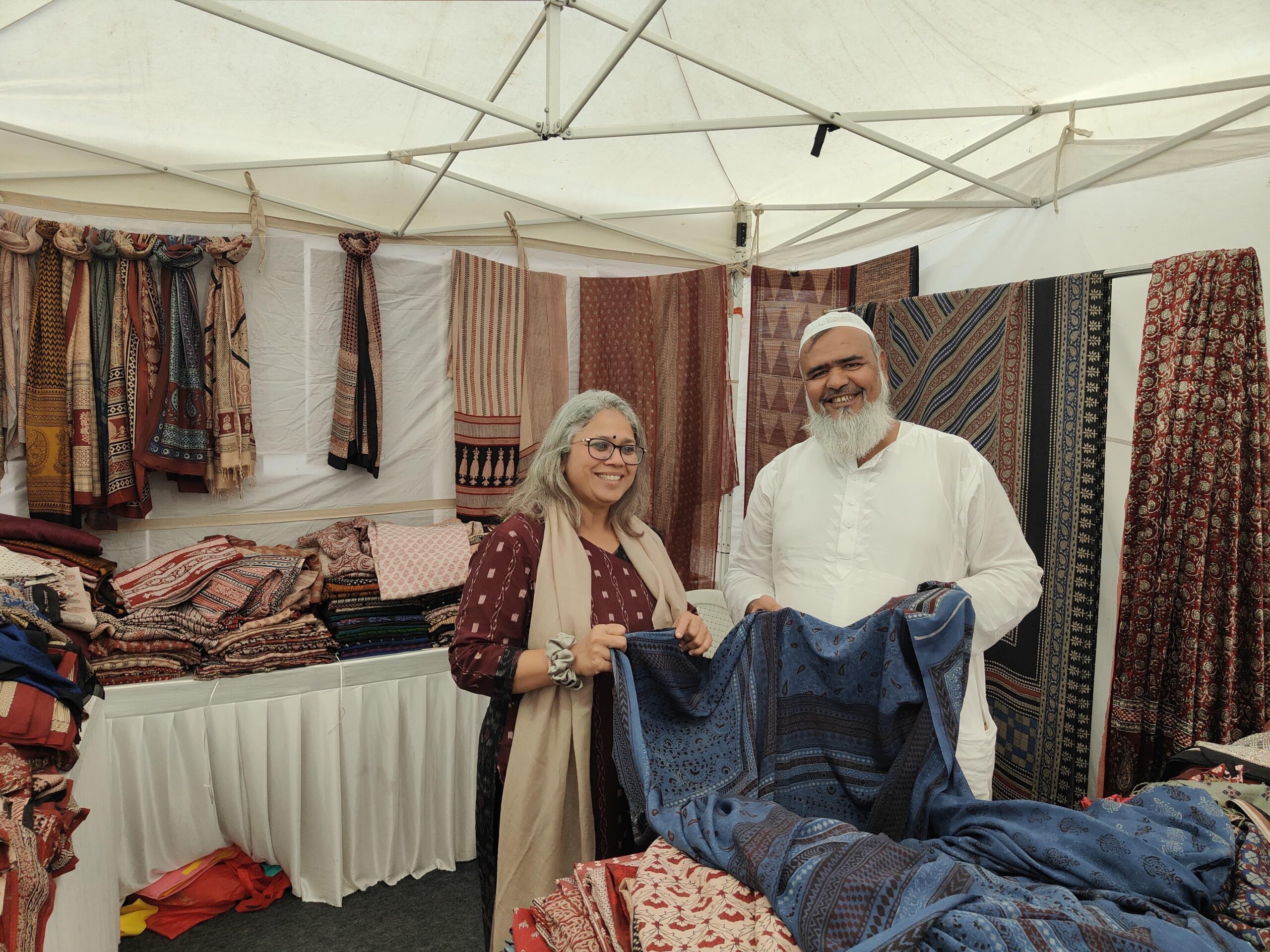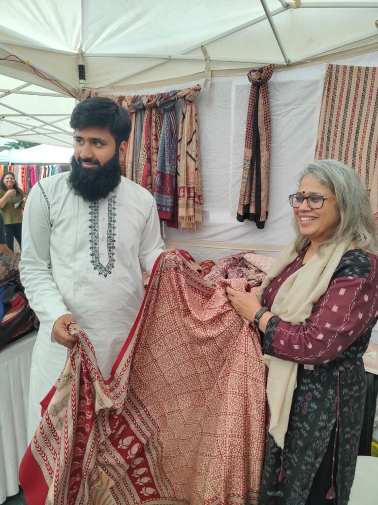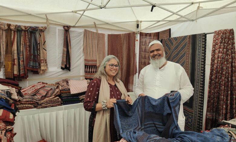 @बैंगलोर। कार्यालय विकास आयुक्त (हस्तशिल्प), नई दिल्ली की प्रमुख विकास आयुक्त श्रीमती अमृत राज ने हाल ही में बैंगलोर में मीरास फाउंडेशन द्वारा आयोजित विशेष हस्तशिल्प प्रदर्शनी का दौरा किया। इस भ्रमण के दौरान उन्होंने देश के विभिन्न कोनों से आए मास्टर शिल्पकारों की कला का अवलोकन किया और उनकी उत्कृष्ट कारीगरी की सराहना की। प्रदर्शनी के दौरान एक महत्वपूर्ण पड़ाव मध्य प्रदेश की प्रसिद्ध ‘बाग प्रिंट’ कला का स्टाल रहा। श्रीमती अमृत राज ने बाग प्रिंट के विश्वविख्यात कलाकार, शिल्प गुरु मोहम्मद युसूफ़ खत्री से मुलाकात की। उन्होंने खत्री जी द्वारा तैयार किए गए अद्भुत नमूनों को न केवल बारीकी से देखा, बल्कि उनकी कलात्मक निपुणता की भूरि-भूरि प्रशंसा भी की।
