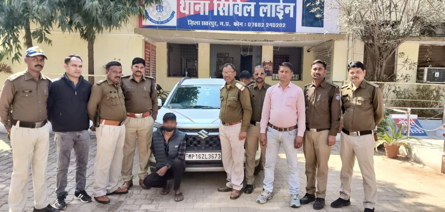 थाना सिविल लाइन पुलिस को विगत रात्रि रोड पेट्रोलिंग के दौरान फोर लेन हाईवे में कार से अवैध मादक पदार्थ गांजा तस्करी के संबंधी सूचना प्राप्त हुई। पुलिस द्वारा रुद्राक्ष होटल के आगे पहुंचकर कार में बैठे संदेही को उतारा गया। तलाशी लेने पर अवैध मादक पदार्थ गांजा प्राप्त हुआ। अवैध मादक पदार्थ 7 किलोग्राम से अधिक गांजा, प्रयुक्त मारुति सुजुकी फ्रांक्स कार कुल संपत्ति कीमत करीब ₹8,50,000 बरामद कर तस्कर बृजेंद्र कुशवाहा पिता कंछेदी कुशवाहा निवासी ग्राम रानीपुरा थाना राजनगर के विरुद्ध थाना सिविल लाइन में एनडीपीएस अधिनियम के तहत अपराध पंजीबद्ध किया गया। अभियुक्त से पूछताछ पर सम्मिलित अन्य आरोपियों के संबंध में जानकारी प्राप्त हुई है जिनकी तलाश की जा रही है। तस्कर बृजेंद्र कुशवाहा थाना राजनगर, बमीठा, सिविल लाइन में अवैध हथियार अवैध शराब मारपीट एवं एनडीपीएस के 7 अपराध में लिप्त है। विधिवत कार्यवाही की गई, अभियुक्त को न्यायालय पेश किया जा रहा है, विवेचना कार्यवाही जारी है।