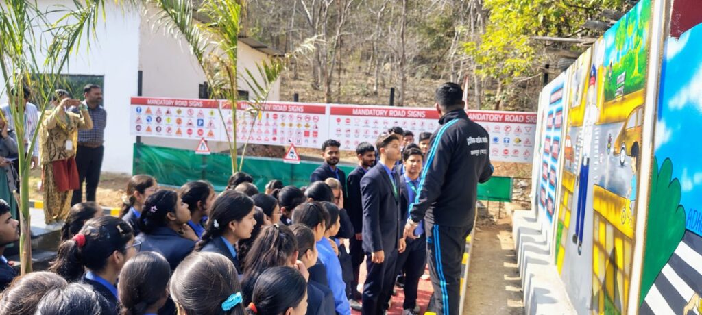 यातायात सिग्नल, संकेतक, चित्रकारी एवं बैनर के माध्यम से छात्र-छात्राओं को किया जा रहा यातायात नियमों के प्रति जागरूक